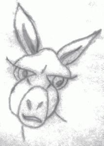 At first they are a bit confused but then they decide that the guy has a point and both climb the donkey. Until they meet a third guy who starts shouting: 'Look at you two, the poor donkey. How can two blokes ride on that poor little animal together?' They decide that he has a point too, pop the donkey on their shoulders and carry it to the market. |