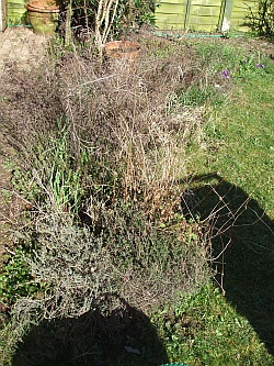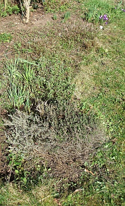 So many reasons to not spend hours to neatly cut the old stuff out, just a few minutes for breaking them off. Everything wood-ish shrubberies, like sage, I prune back quite hard. It’ll grow back like mad anyway, so a good knock on the head to keep it at bay for the rest of the summer will do the trick.