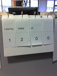 This little timer I created is just great. It's one of my hand crafted inventions from a folder the wrong way round and sheets of paper to flip. I have a strip of paper to click in, indicating when I'm having my lunch break.