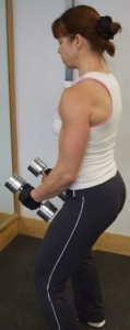 Lift the head, straighten the back, clench the buttocks and feel the weight.
