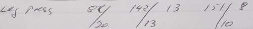 I learned this way of writing it down from hubby who learned it from the weightlifters with whom he started his weight lifting career back in his teenage years. They attended regional competitions and knew their stuff. He learned everything about handling weights from them. He only competed once and then felt that competing wasn't really for him, but was welded to the iron already. So he swapped over to body building. So actually we both learned our weight lifting from scratch. Now I don't have a diary anymore, although I would start immediately if I were to have a specific aim.