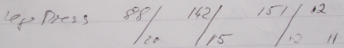 In the first set with 124 I could do 15 reps what is too much so I went straight to the 142. I could do 15 again but they felt very heavy. So I gave it another shot and only could do 12. Just to see what happens I increased again to 151 and only could do 8.