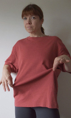 In the training pictures you will see that I'm wearing very tight stuff that doesn't move a lot but stretches. You will see as well that the posture for some of the exercises is rather awkward. When I was still round-ish I wore wider T-shirts and when kneeling on a bench bending forward I could see my feet through the openings of the T-Shirt. Looking up realising that there are mirrors around all over the place and that not only I could see straight through.