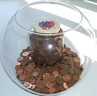 Many a little makes a mickle! Pennies are the sort of money which can become a bit of a nuisance. They are heavy and break the sturdiest of purses, one never takes the time to actually pay something with them and one is lucky to have kids collecting them, until they start realising that they are not worth a lot. However, if collected big style they can make quite a difference! I started to ask people for their pennies right after the 2008 Race for Life and I was given a few whole bags full by dear colleagues, some even containing a few silverlings which I now collect in a separate jar. This is the first bag full I got: