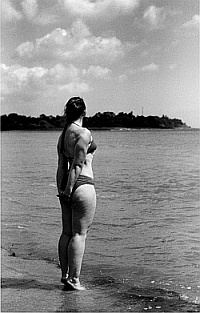 Coming home still buzzing from an exciting day I was sinking in my armchair with a cappuccino … and fainted into sleep. Oh my goodness was I knackered, and the next day I knew why: I had the worst muscle ache that I ever had in all my life! The third thing that I didn’t anticipate was the fact that flexing basically means working out. Chris had exposed seven roles which are worth about 200 or so pictures and I had been climbing, flexing and carrying dumbbells for several hours. Well, and then a few weeks later I first got the contact sheets and then the pictures I had chosen, and here I am: Proud that I did it and that thanks to a great photographer some are actually quite decent. As you can see that my leg issues got confirmed, so I have a good incentive now to tackle those head on. I still have to get the hang of my posing and from the not so good pictures I can learn a lot. I found that since I have seen those pictures my posture has improved altogether; I am holding my head higher; I remember to relax the shoulders more often and I try to keep the pelvis at a better tilt than I usually do. To improve my balance I am doing my stretching routine more often and will extend it towards keeping the balance a bit more, and I surely will remember to take sun-block to the next photo shoot. Thanks Chris! You gave me a wonderful opportunity and wouldn’t want to have missed it for the world. I hope we can do it again some time! |